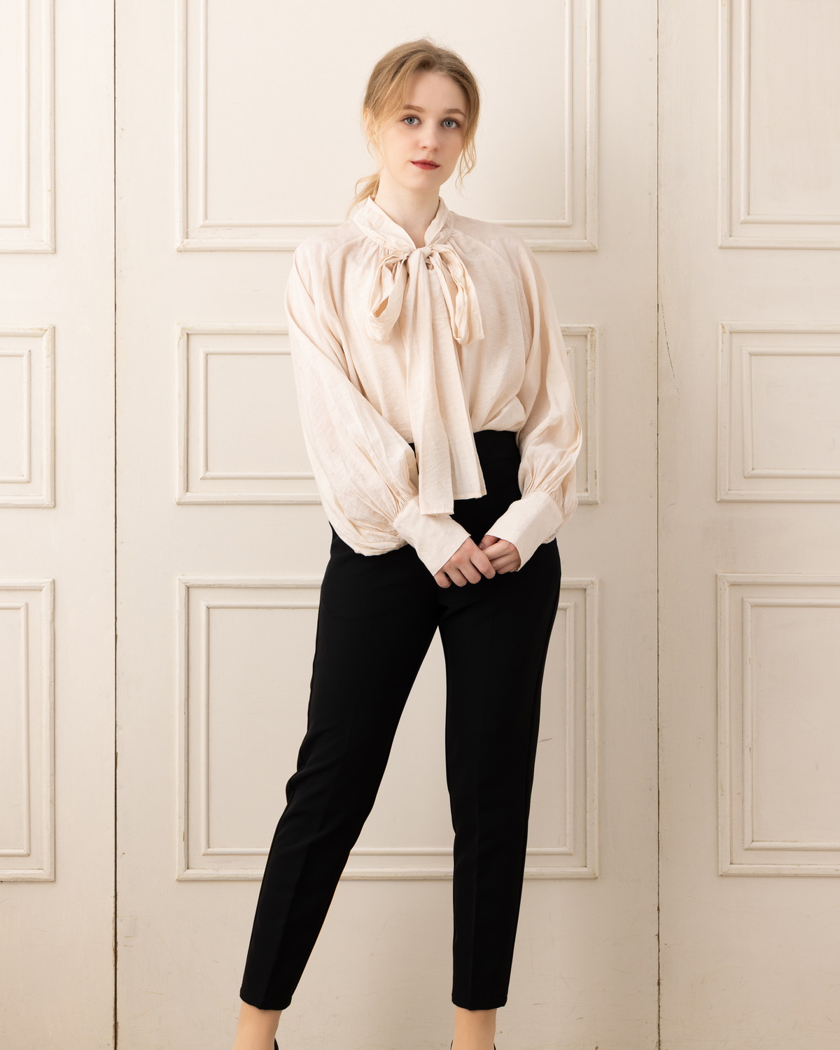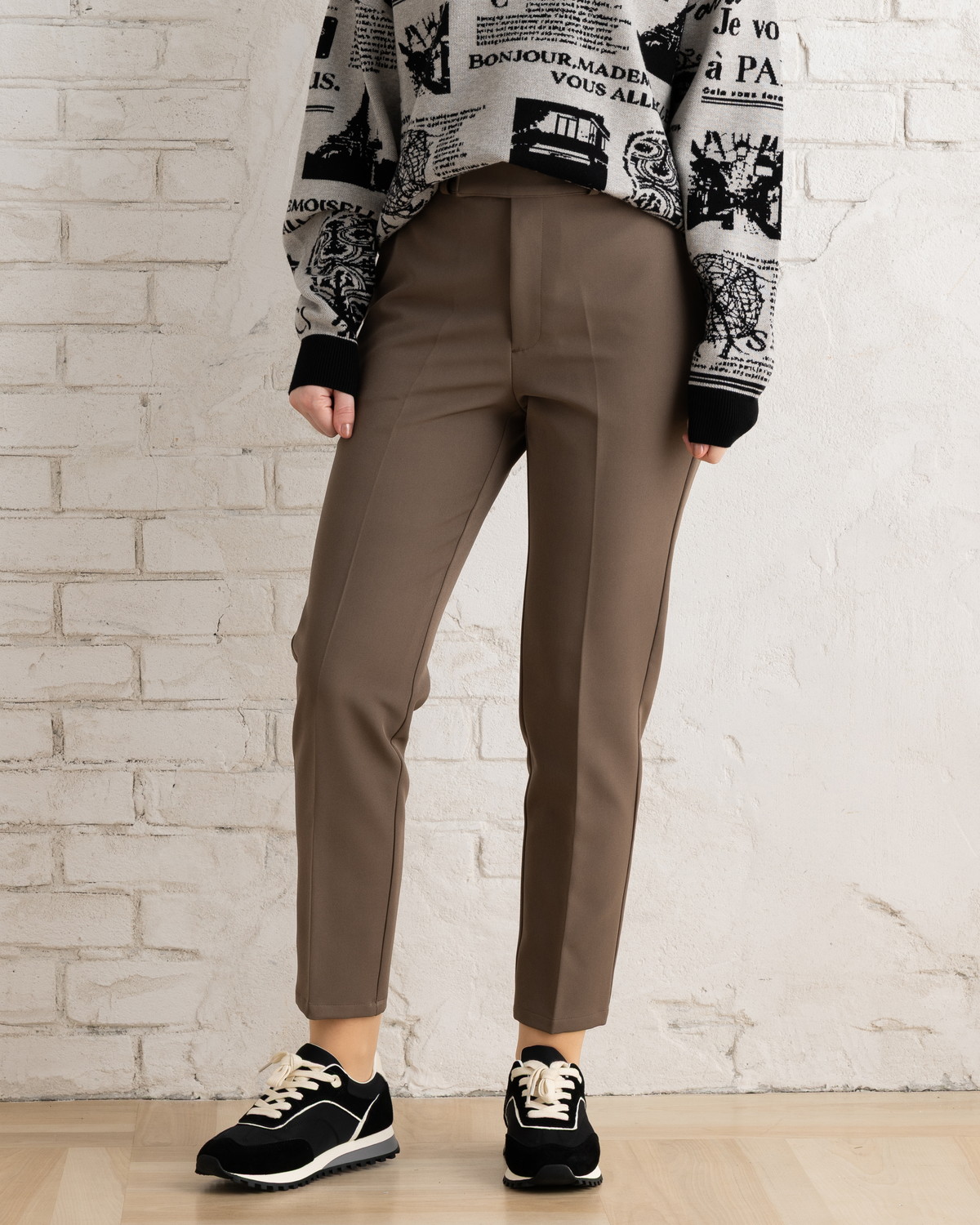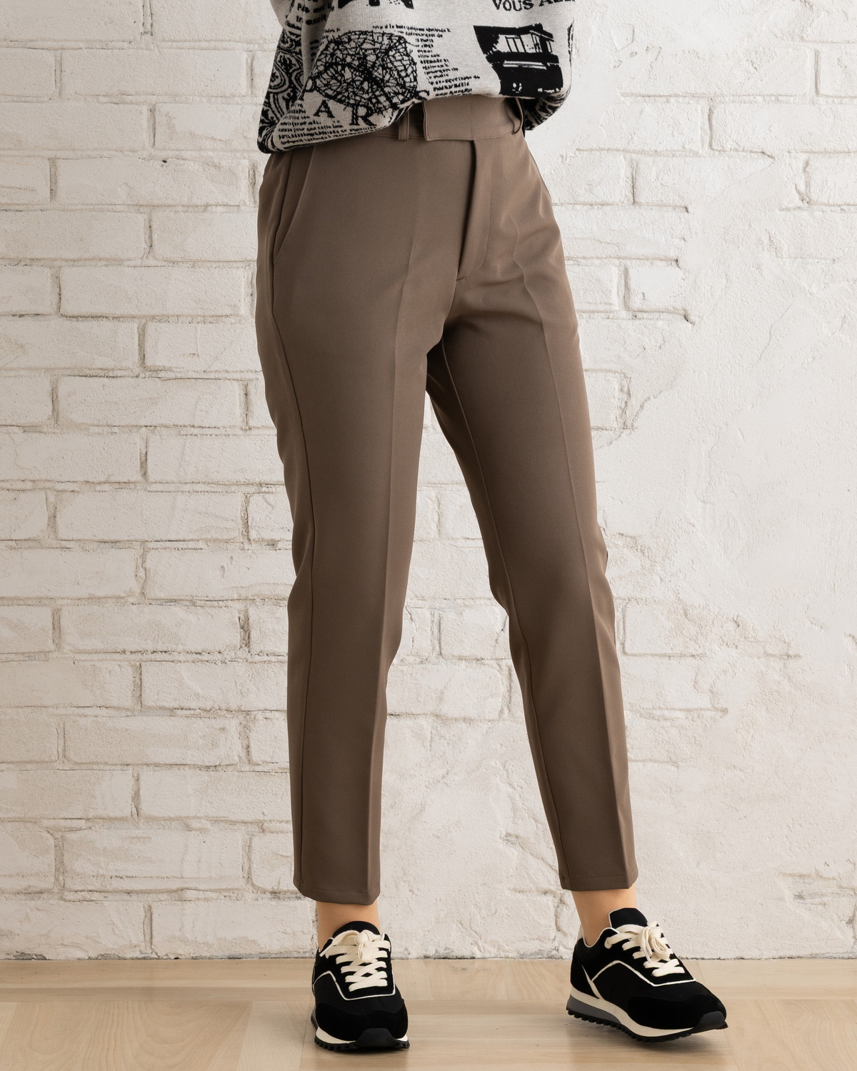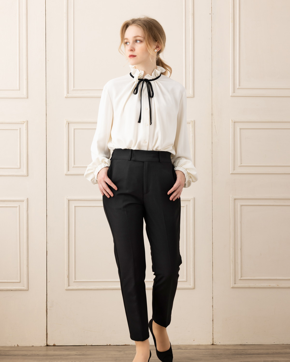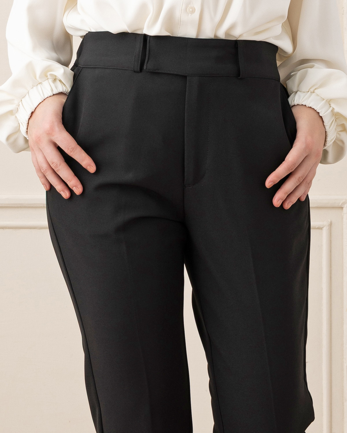 定番シルエットだからこそ、フロントのノータックデザインとセンタープレスできちんと感と上品さを演出します。