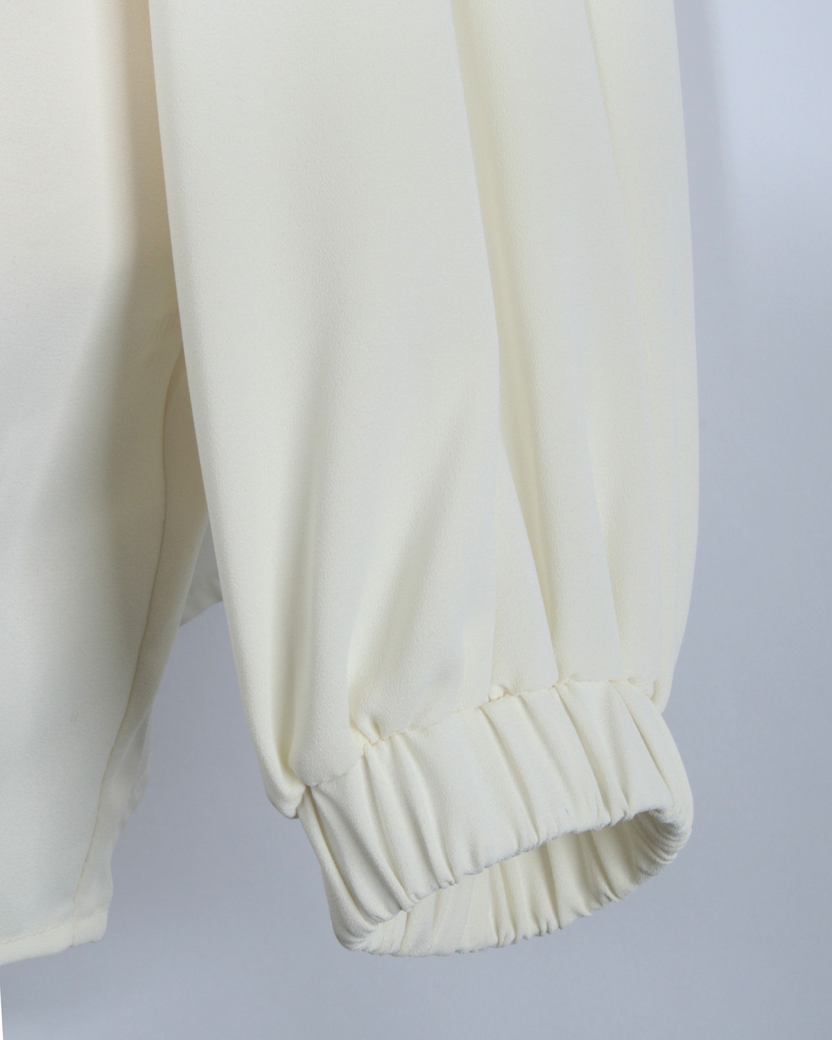 袖口のゴムでふんわりとしたボリュームスリーブを作り出し、手首を華奢に見せてくれます。袖丈の調節もしやすい実用的なデザインです。