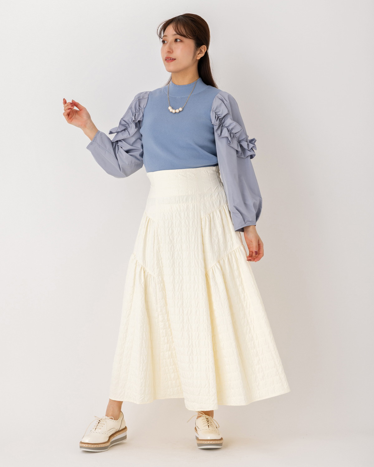【立体感のある「ふくれジャガード」で魅せる主役級スカート】