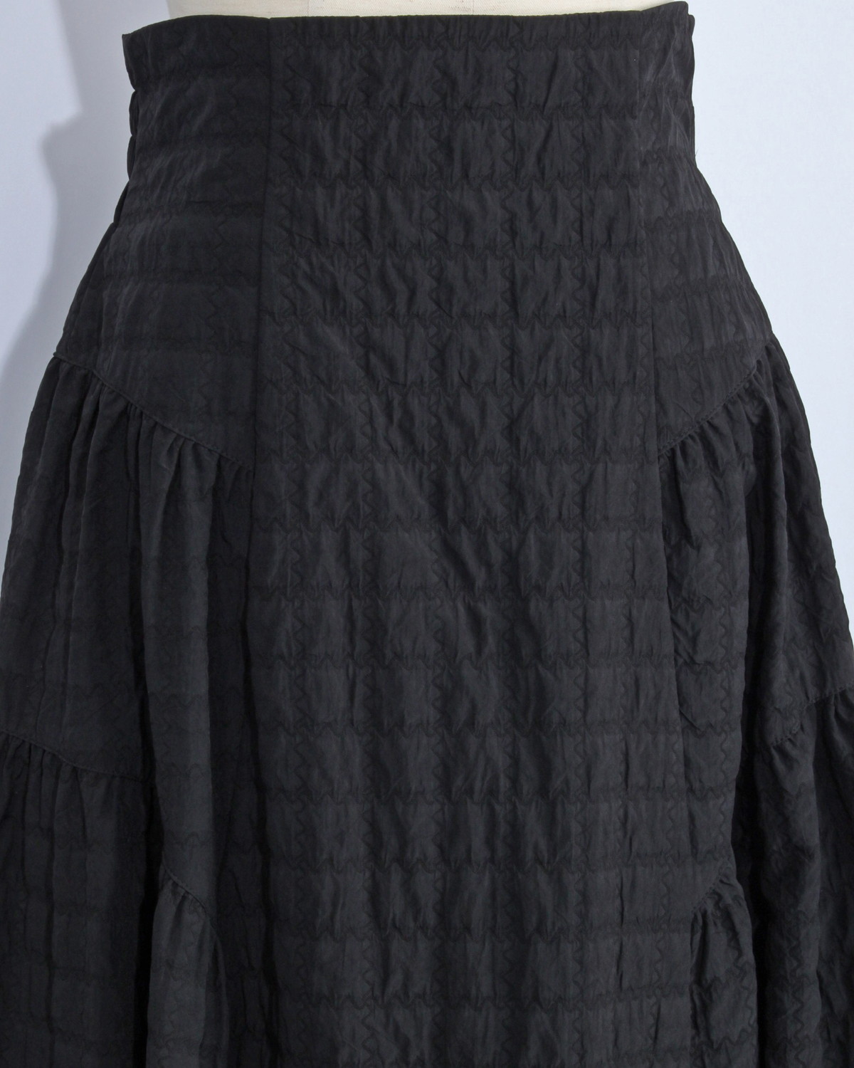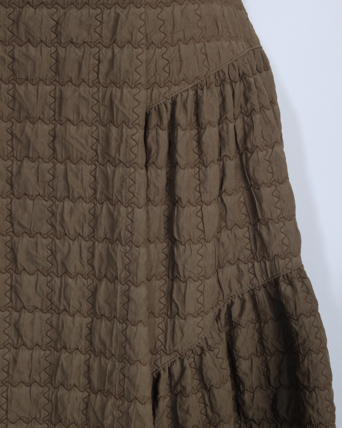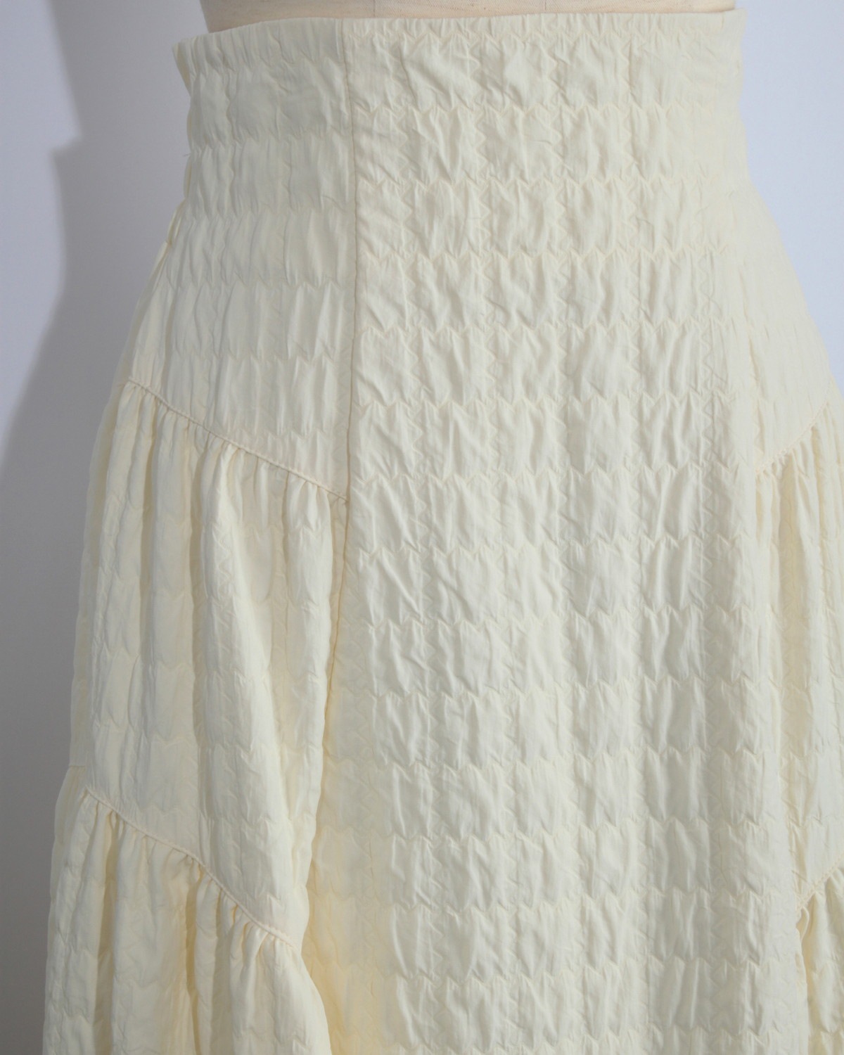 凹凸のあるポコポコとした表情が目を惹く、トレンドのふくれジャガード生地を贅沢に使用しました。 単色ながらもしっかりとした存在感があり、シンプルなトップスと合わせるだけで、奥行きのある洗練されたコーディネートが完成します。