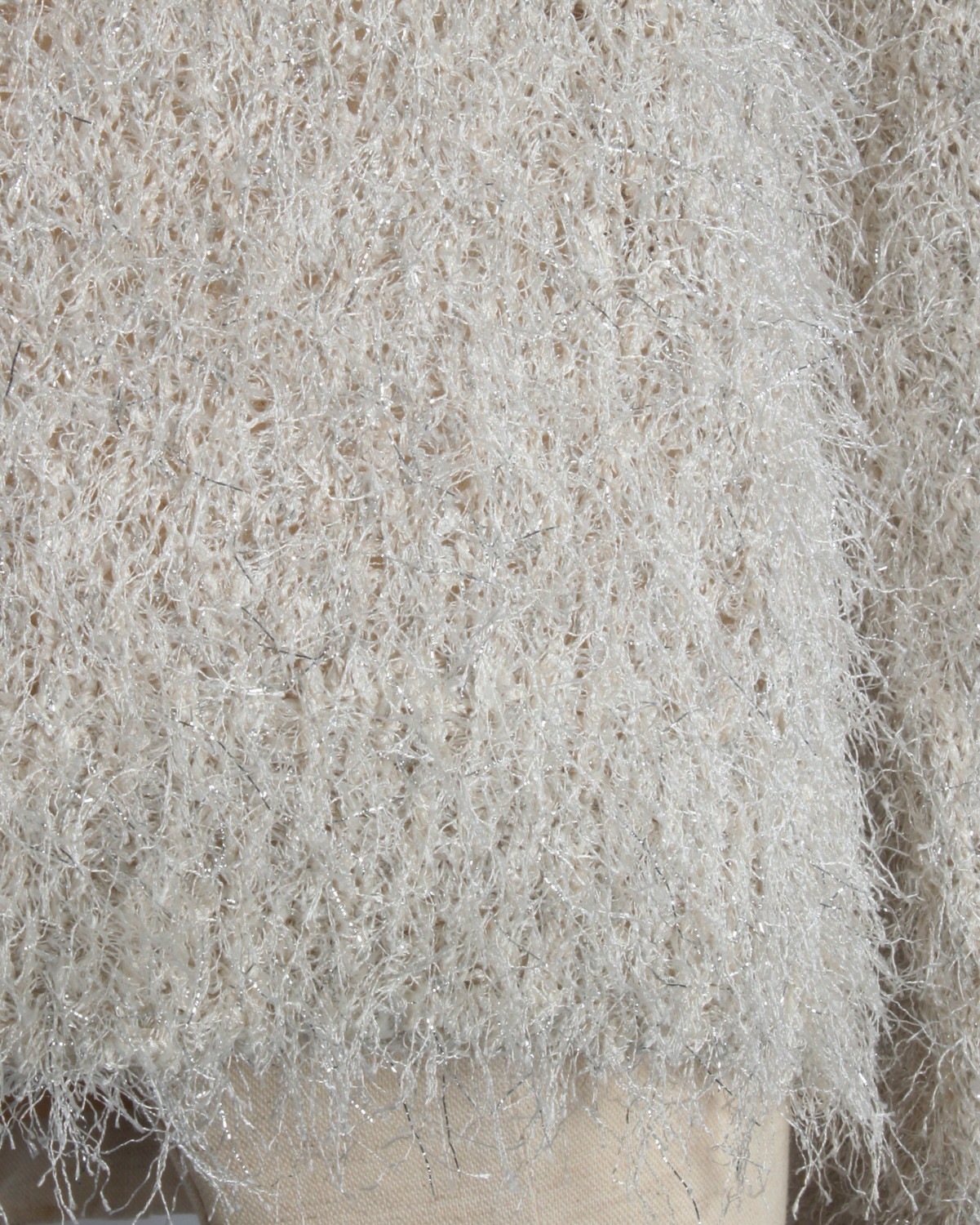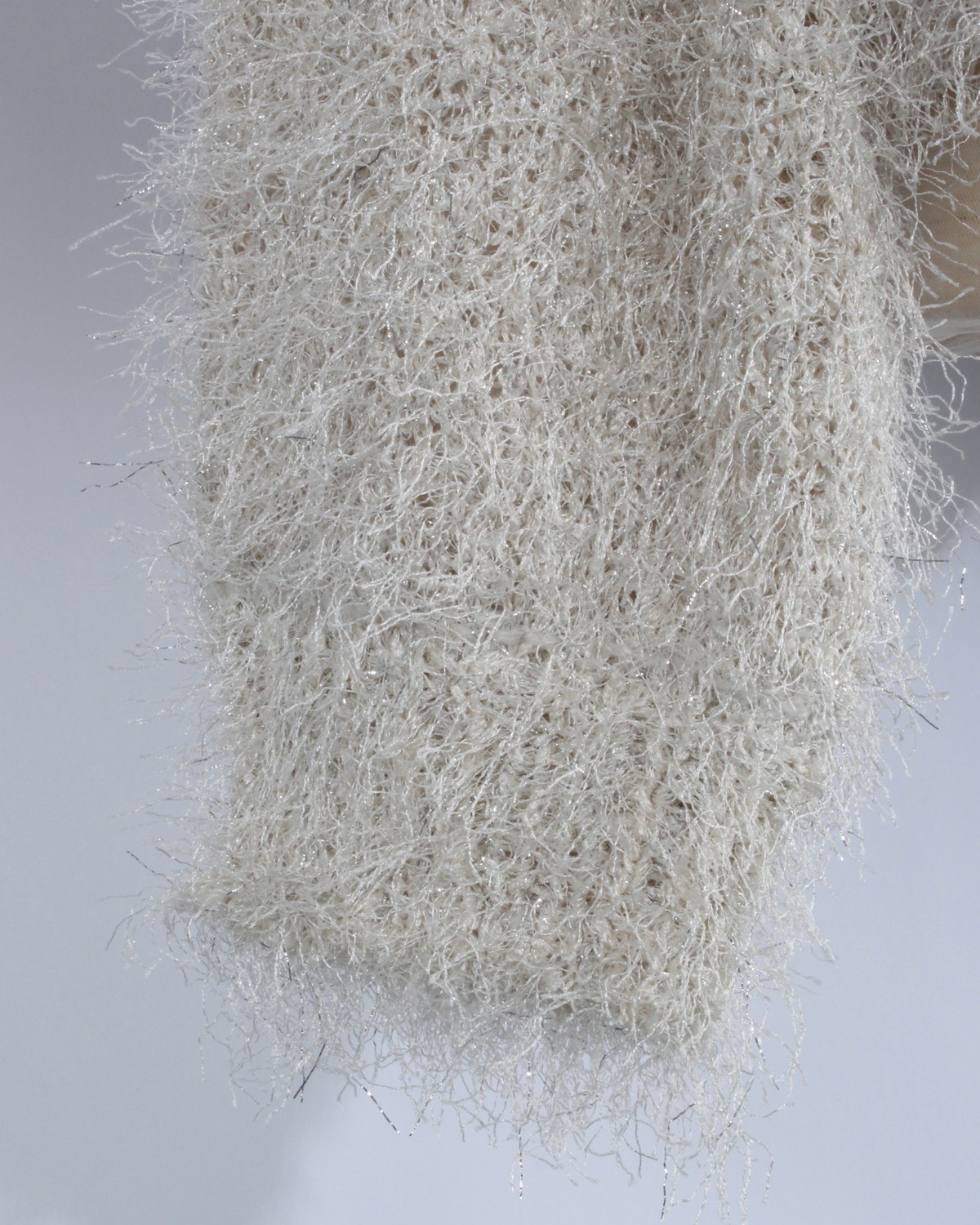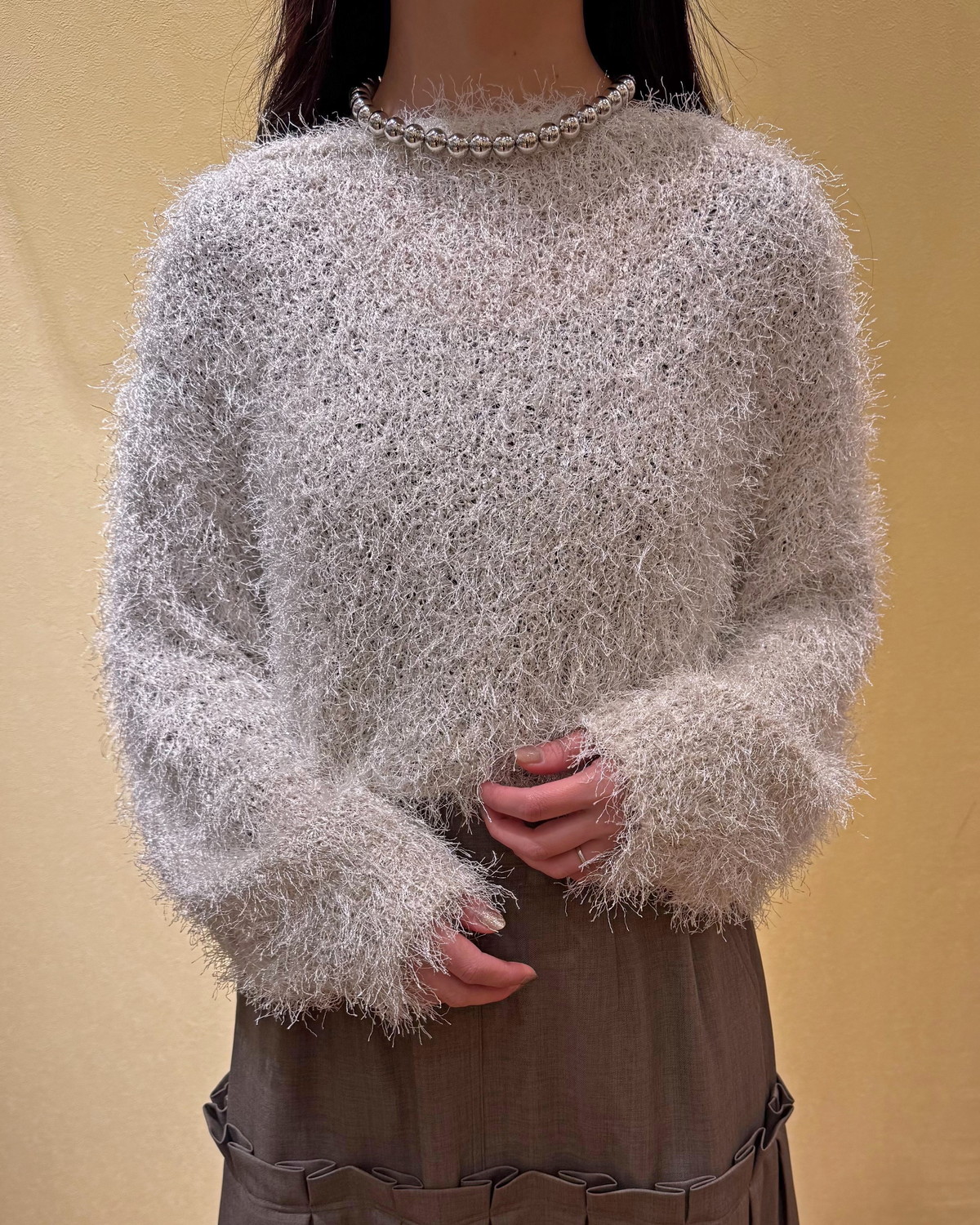 長めの毛足(シャギー)がフリンジのように揺れ、ニット特有の重たさを感じさせない軽やかな印象に仕上げました。 「シンプルだけど、普通じゃない」 そんなこだわりを詰め込んだ、今っぽさ全開のアイテムです。