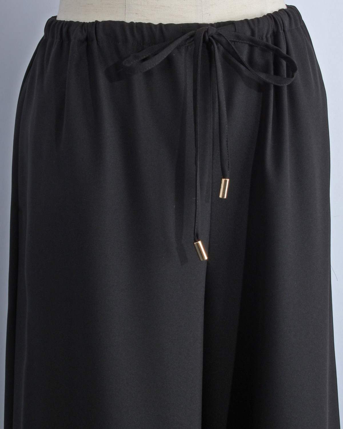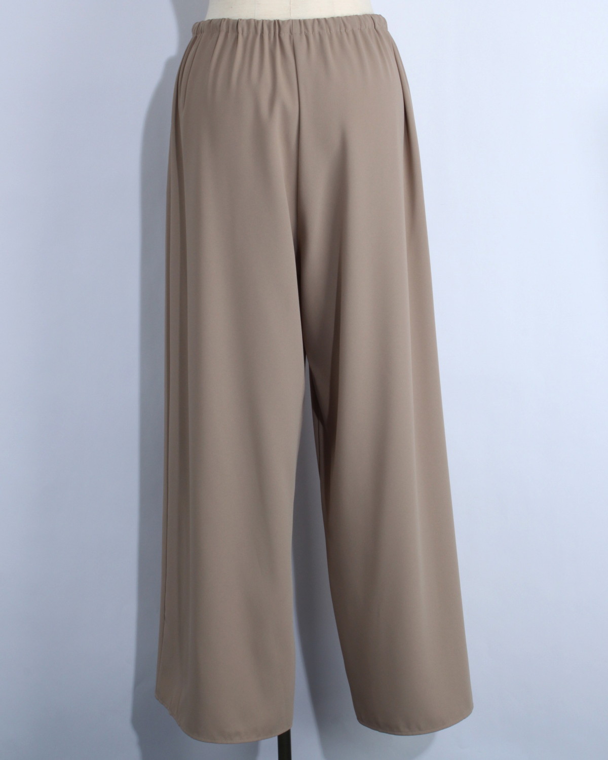 ウエストは総ゴム仕様で、長時間の着用やデスクワークでもストレスフリー。