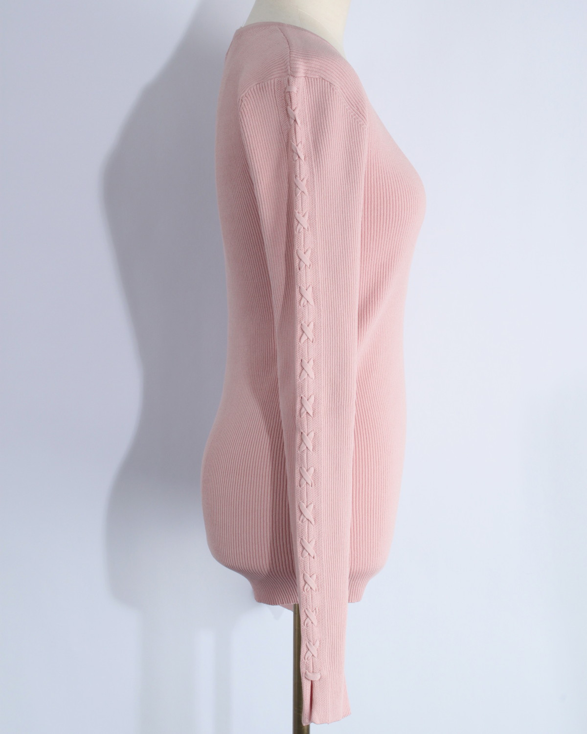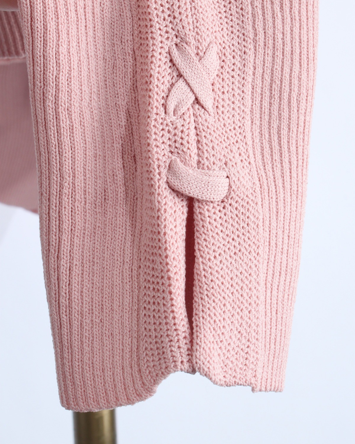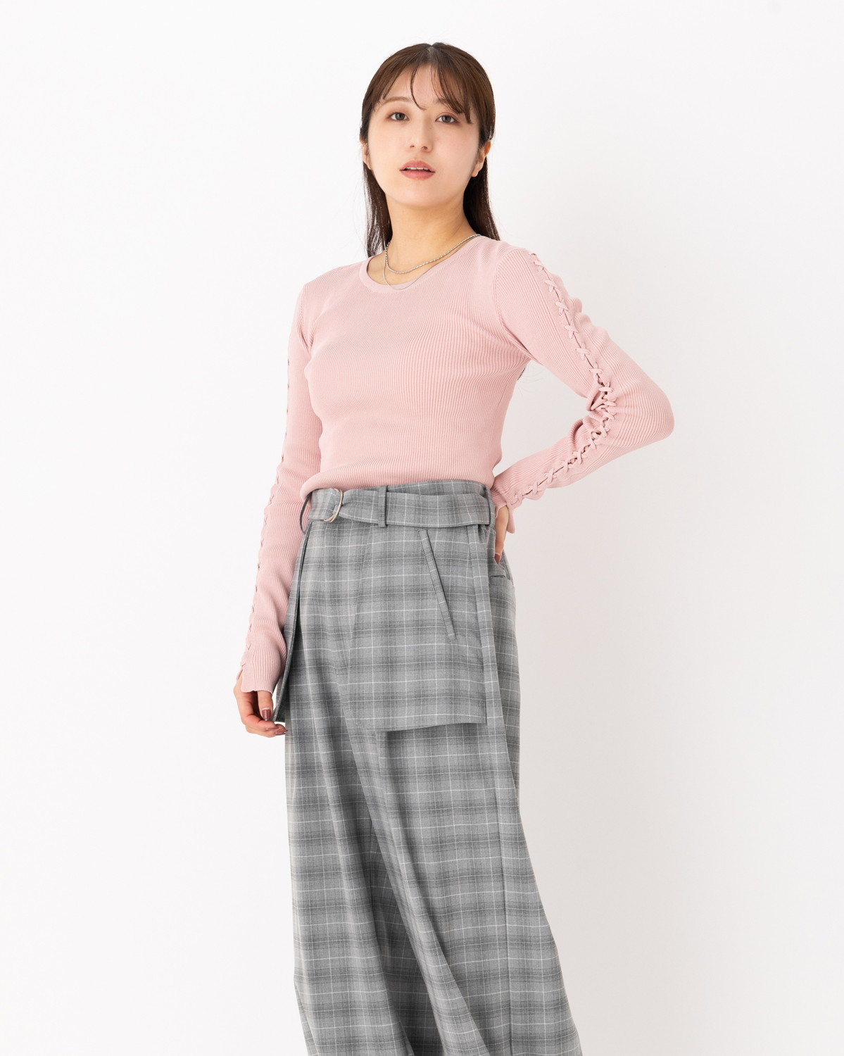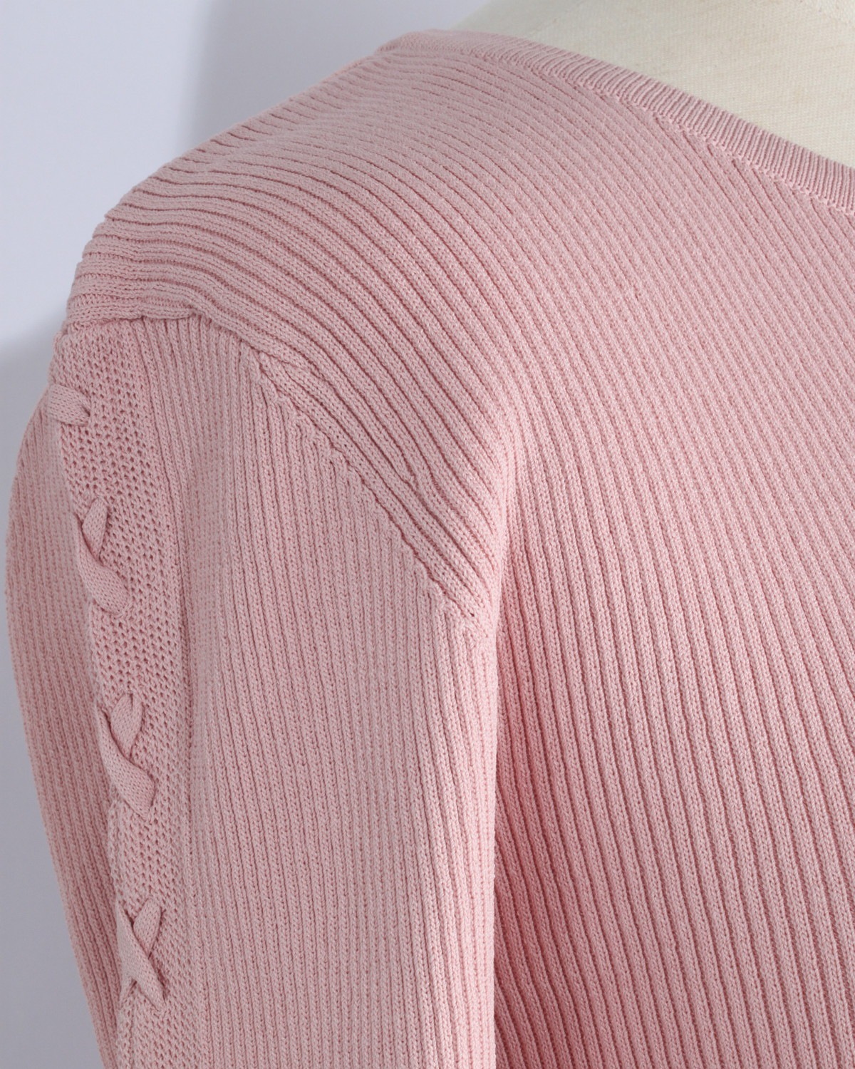 【手元に、繊細なスパイスを。レースアップがつくる、可憐でモードな表情のリブニット】