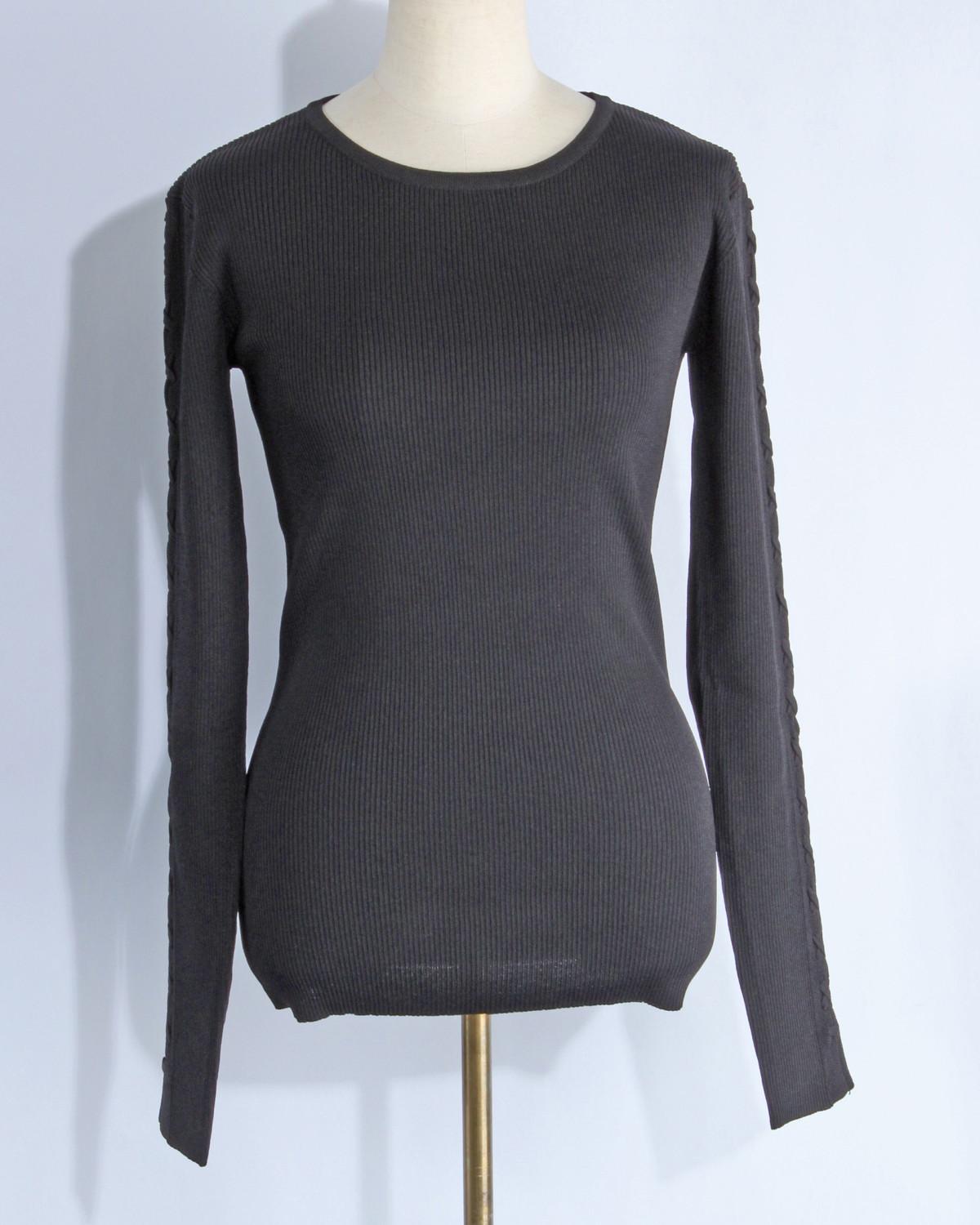 フォルムを崩さない伸縮性: 身体の動きに合わせて柔軟に伸びつつ、袖のデザインが崩れにくい編み地を採用しています。
