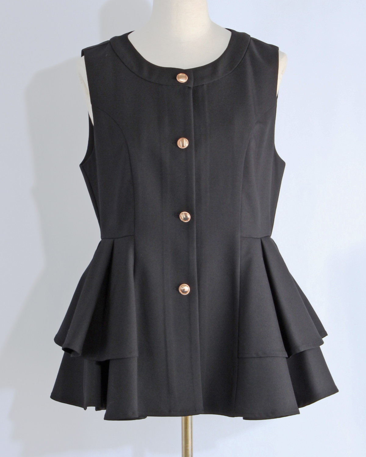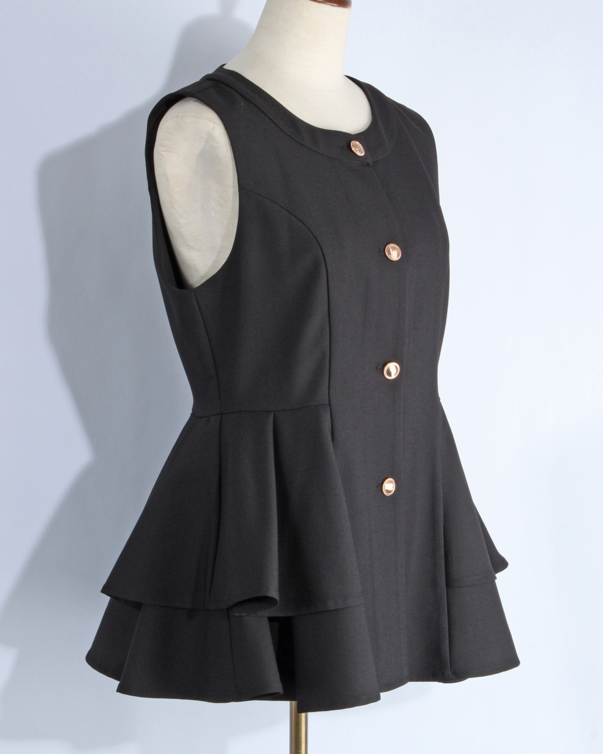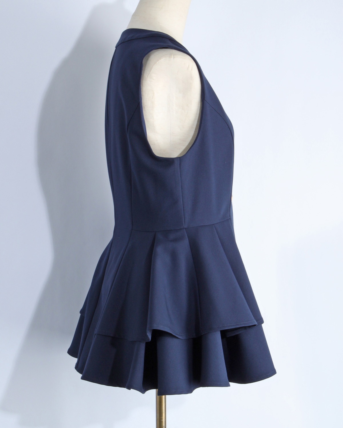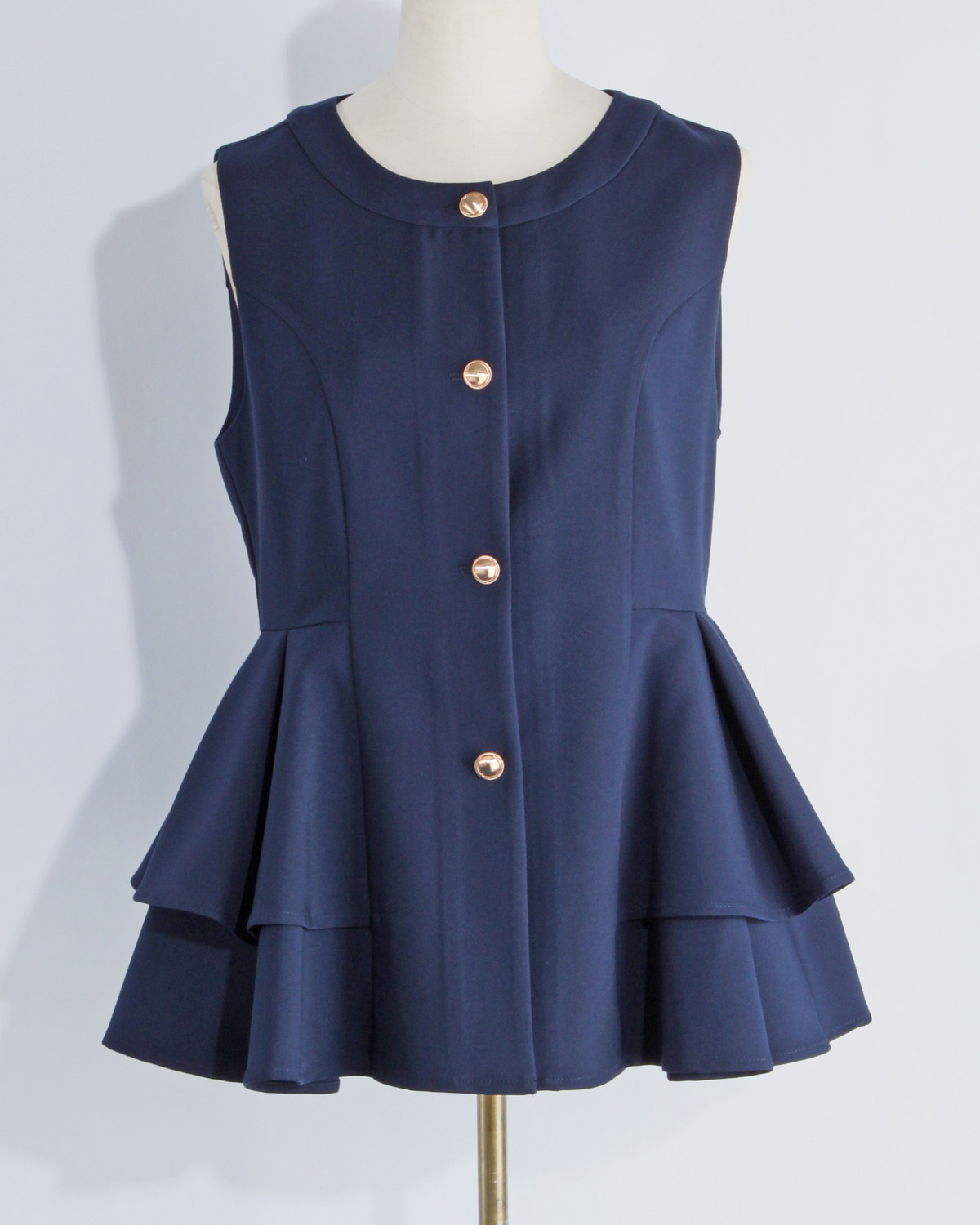 高めのウエスト位置から広がる2段のペプラムが、気になる腰回りをカバーしつつ、着るだけですっきりとしたバランスに仕上げてくれます。
