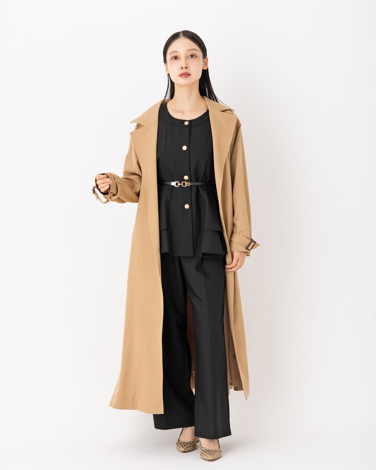 さらに、フロントに並んだ艶やかなゴールドボタンが、アクセサリーいらずの華やかさをプラスしてくれます。