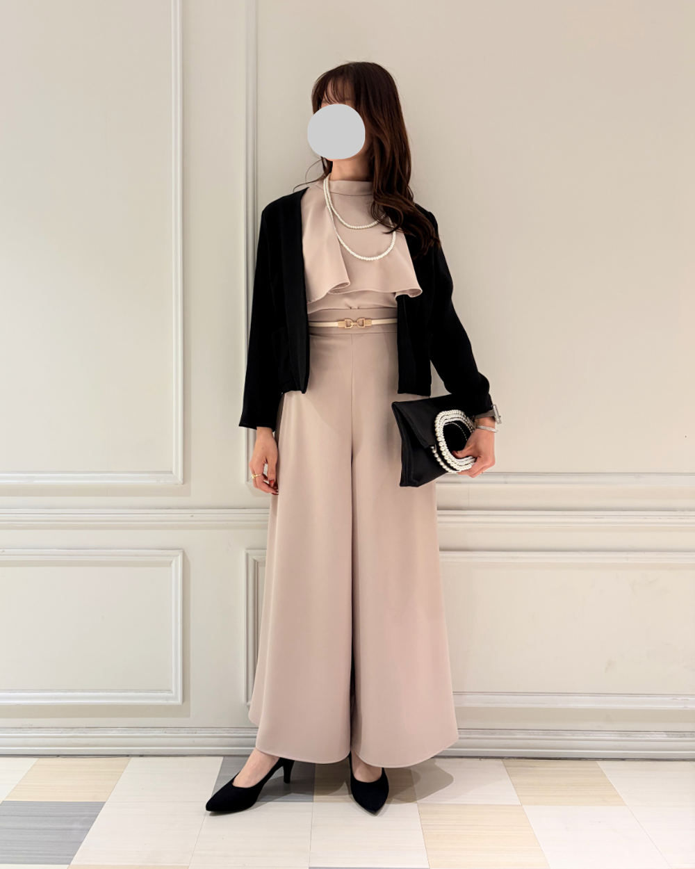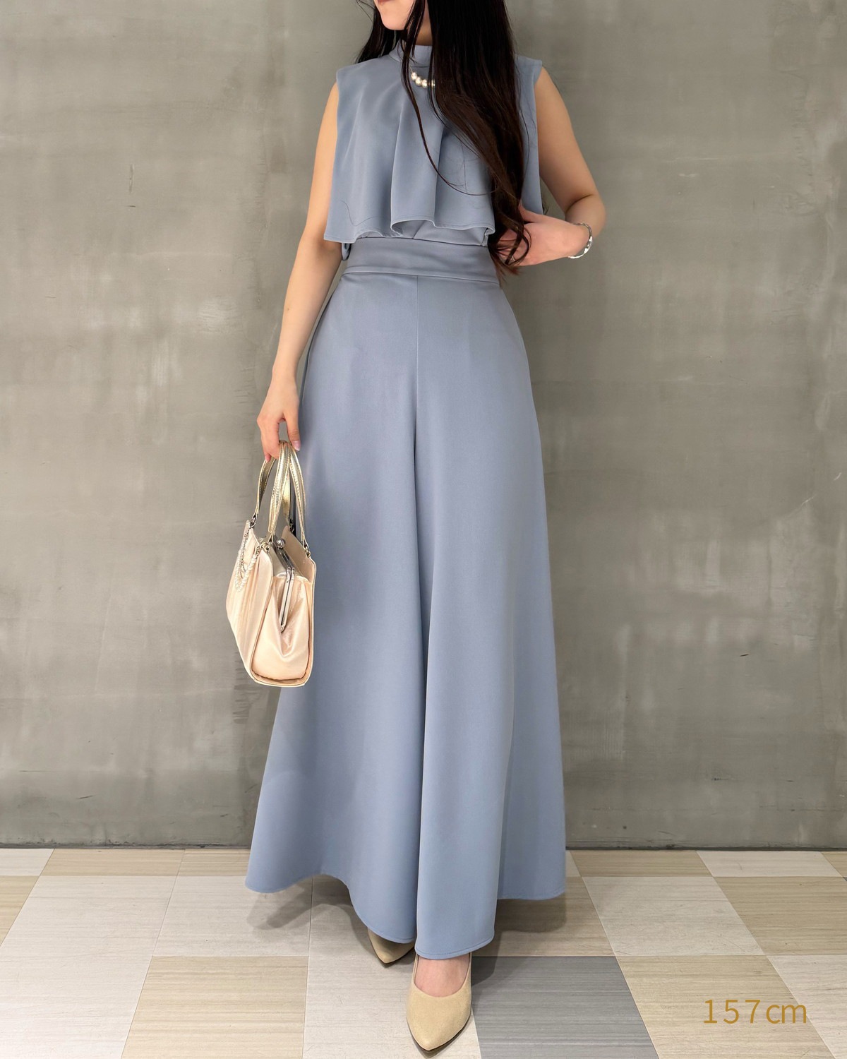 同素材のブラウスとのセットアップでのご着用がおすすめです。