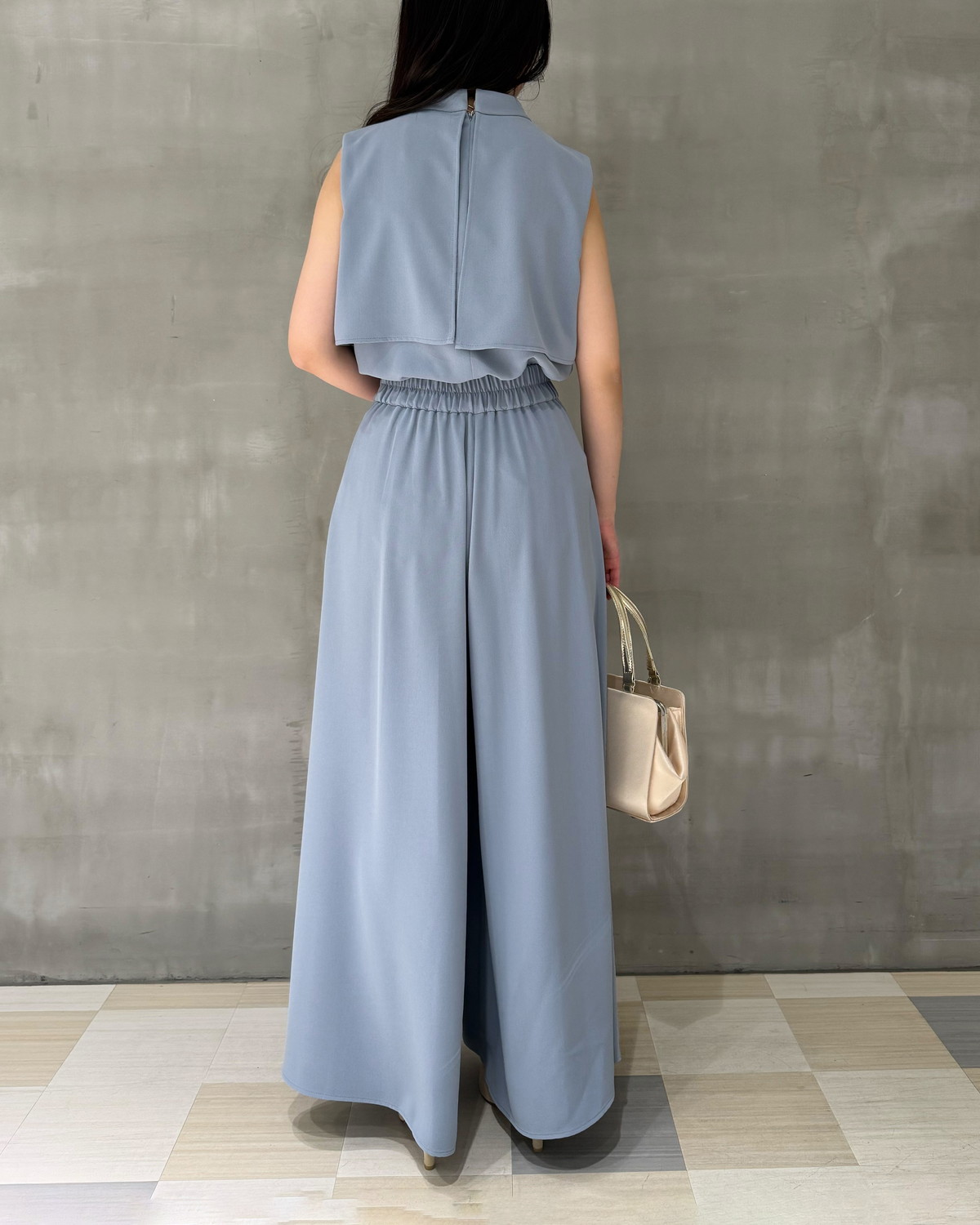 ストレスフリーな着心地: ウエストの後ろ部分のみをゴム仕様にすることで、フロントの美しさを保ちつつ、一日中穿いていても疲れにくい快適さを実現しました。