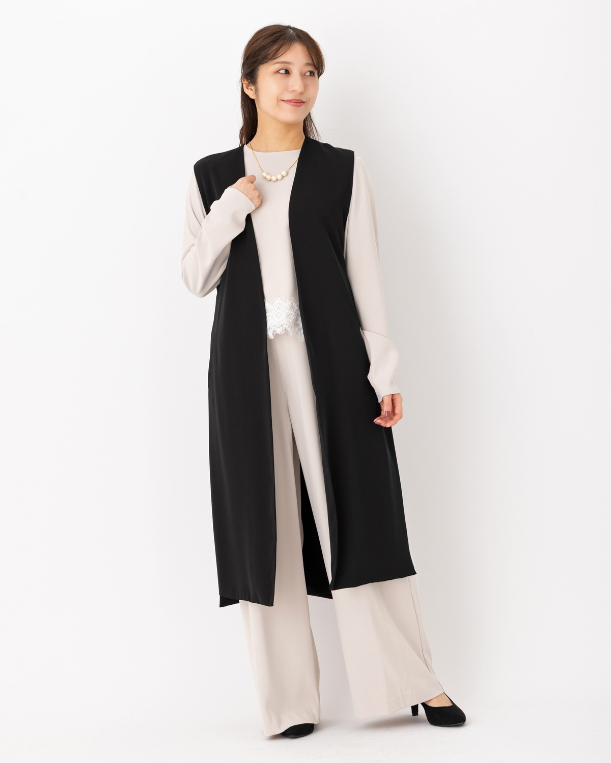 【空間を纏い、スタイルを研ぎ澄ます。サイドの抜け感が魅せる、究極のレイヤード・ロングジレ】