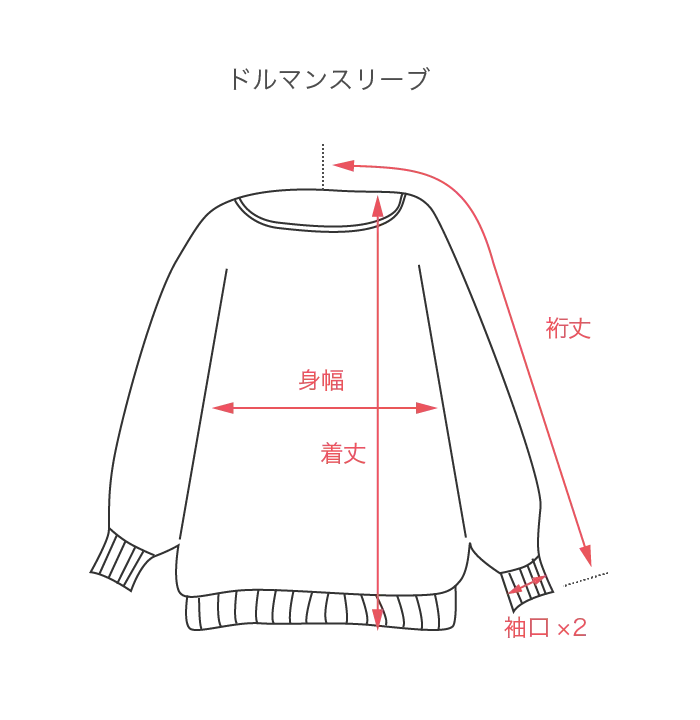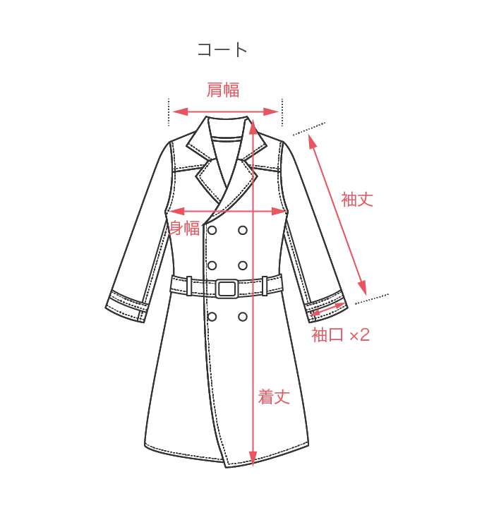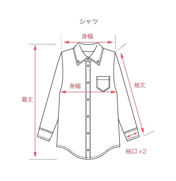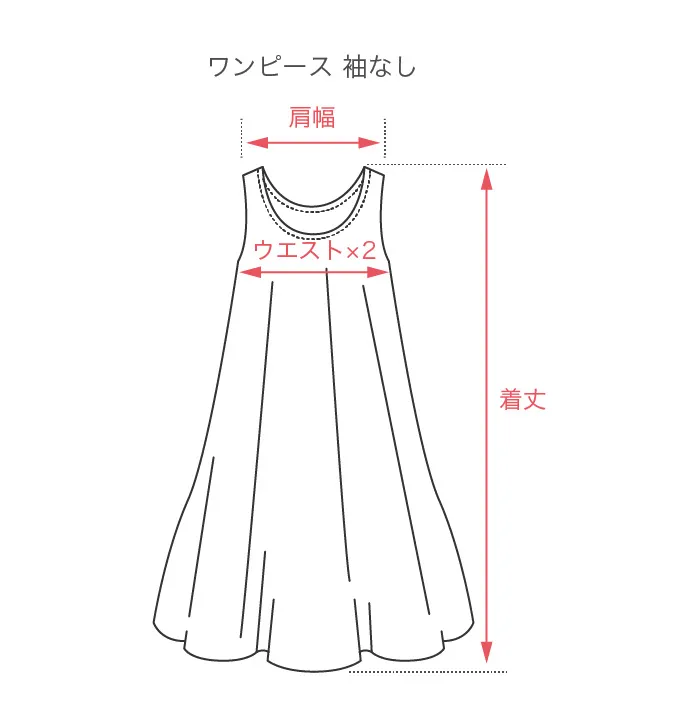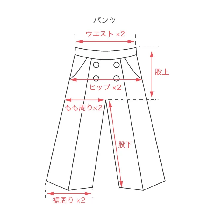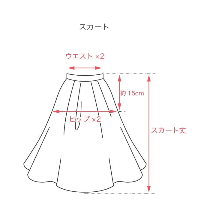 - ・タックやプリーツは伸ばさない状態で測ります。